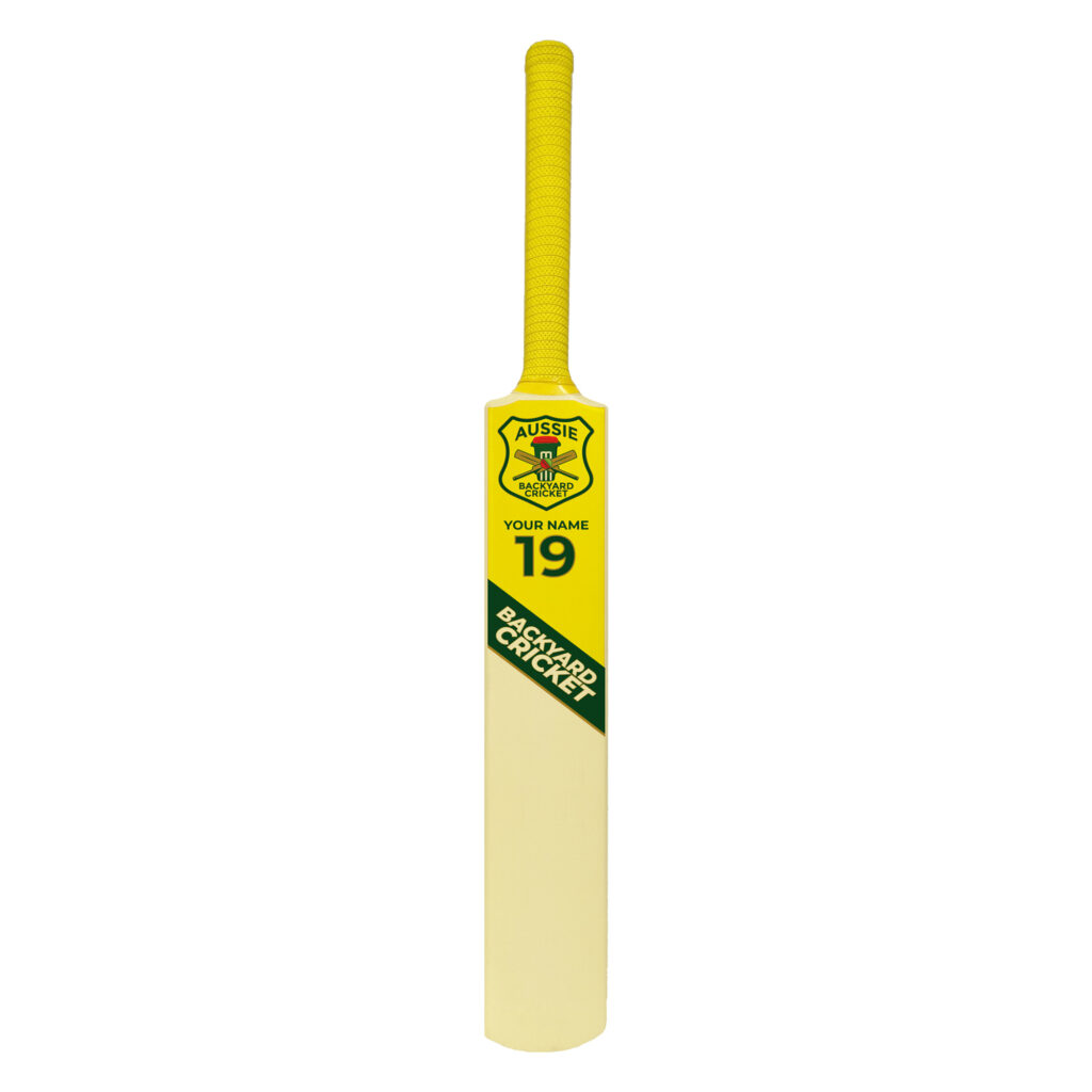 Check out our hybrid plastic Aussie Backyard Cricket Bat. It has a good feel and is a lightweight weapon ready for the backyard. It is designed to depower the slogs so they stay on this side of the fence. Best of all it is personalised with YOUR NAME and YOUR NUMBER for FREE
