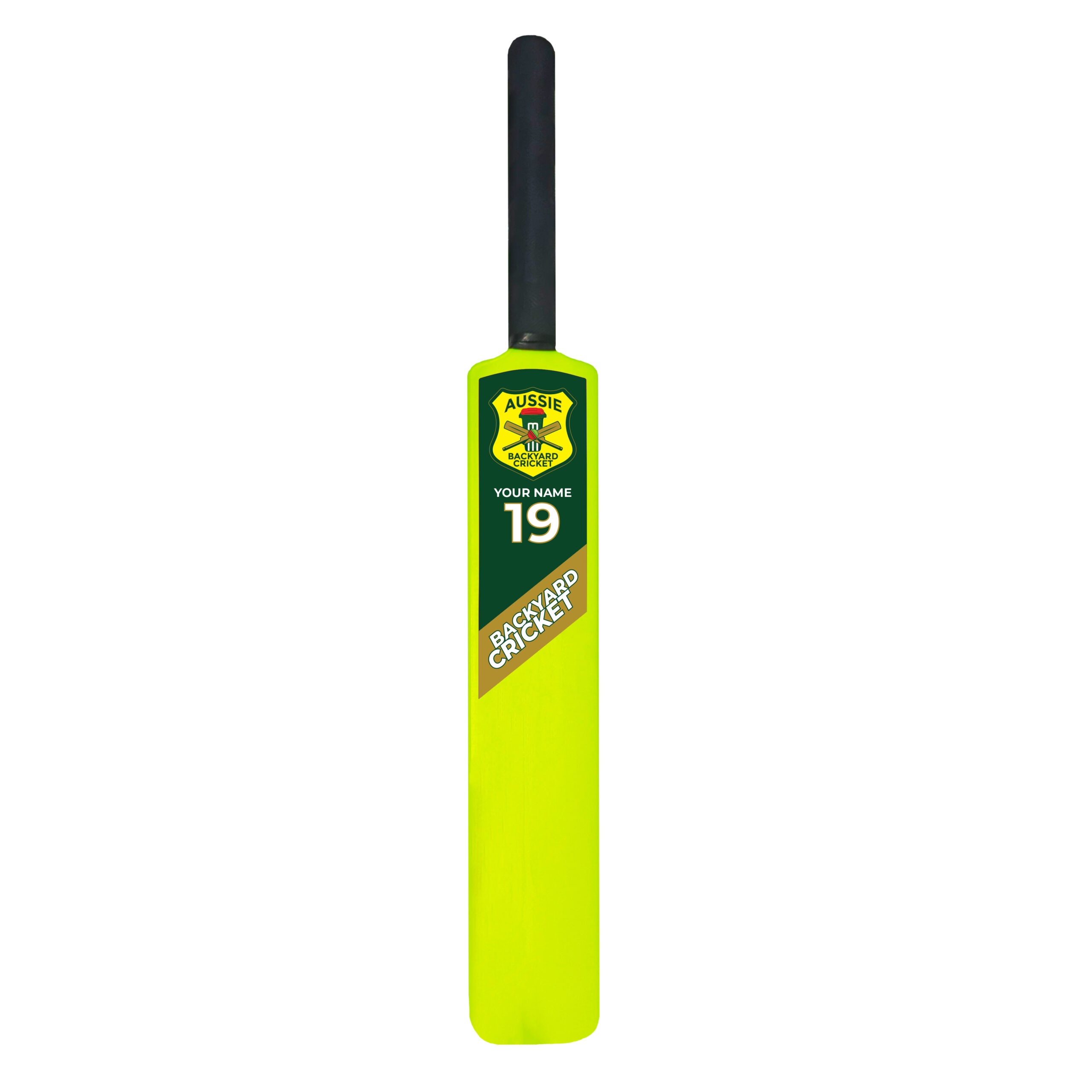 Check out our hybrid plastic Aussie Backyard Cricket Bat. It has a good feel and is a lightweight weapon ready for the backyard. It is designed to depower the slogs so they stay on this side of the fence. Best of all it is personalised with YOUR NAME and YOUR NUMBER for FREE