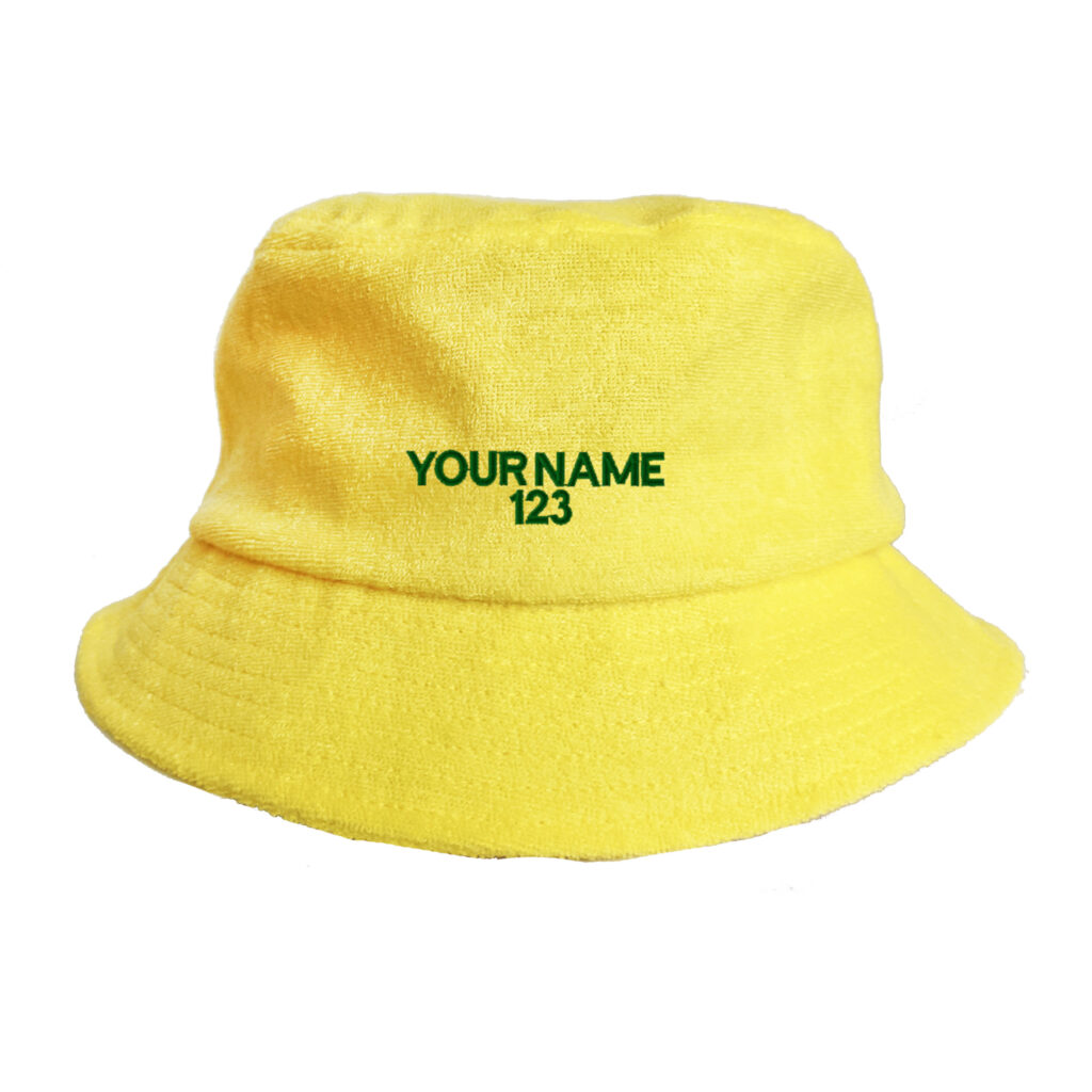The Aussie Backyard Cricket Yellow Towlie is the new choice of headwear for this summer.  Made of the finest towling we could get our hands on this little beauty includes personalisation with YOUR NAME and YOUR NUMBER on the back.